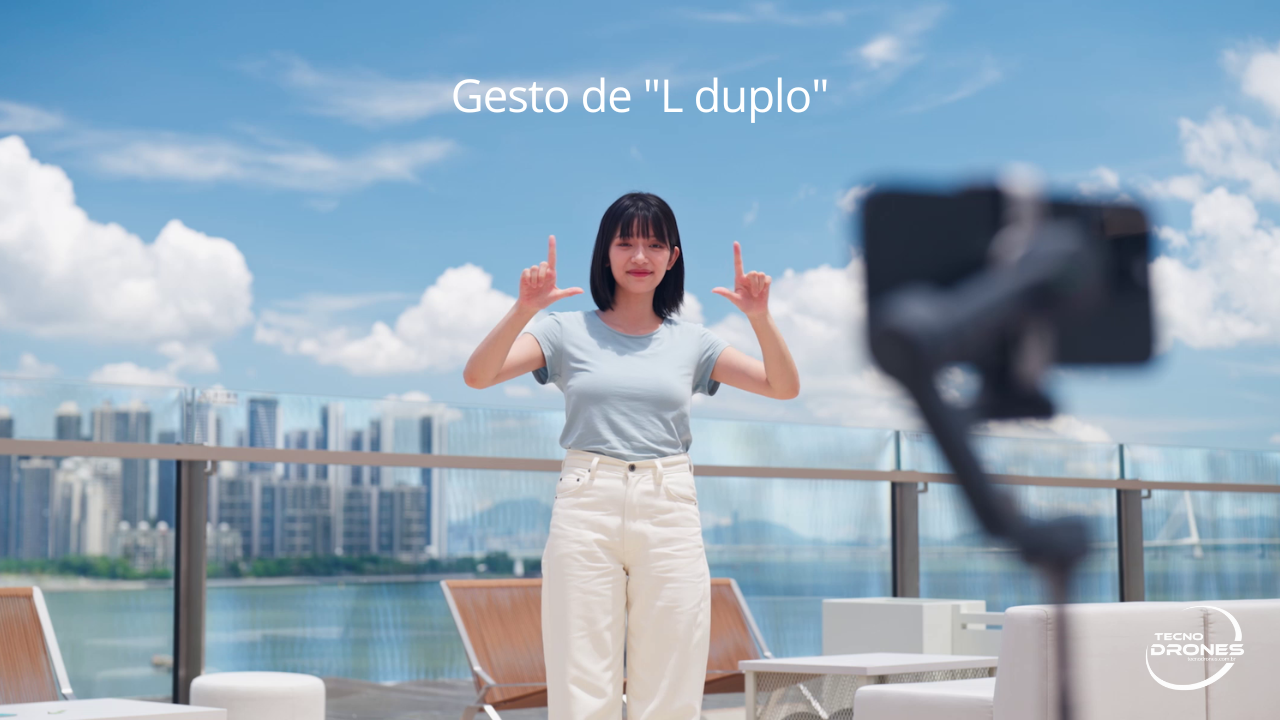 Use o gesto de "L duplo" para ajustar o enquadramento. Não importa como você se mova, a câmera enquadrará você automaticamente de forma perfeita, para que você esteja sempre na posição ideal.
