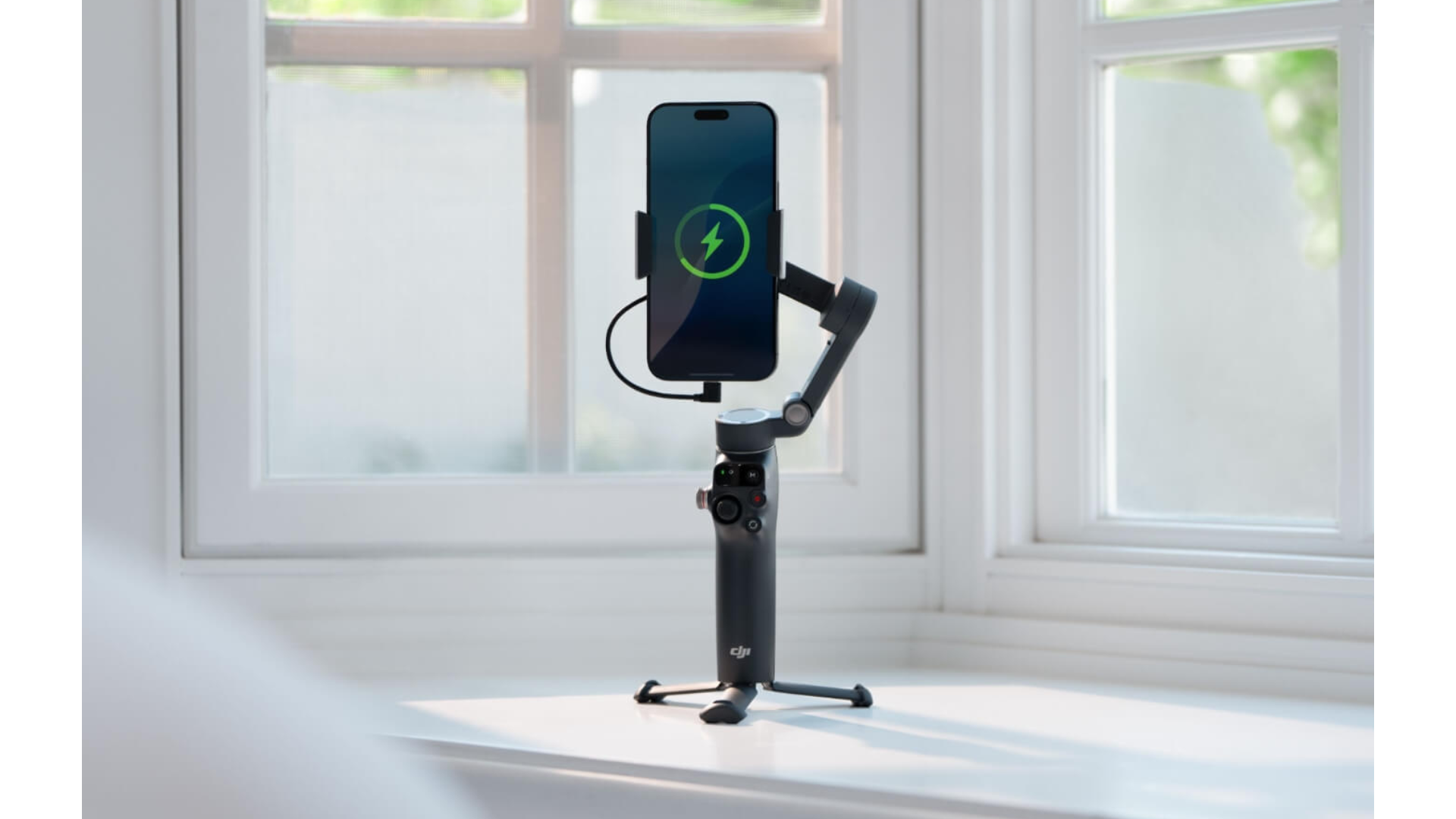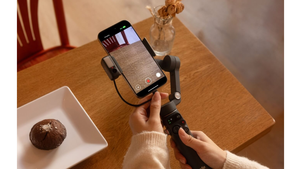 Com uma porta USB-C, o estabilizador também pode carregar seu telefone — ideal para filmagens externas prolongadas e transmissões ao vivo.