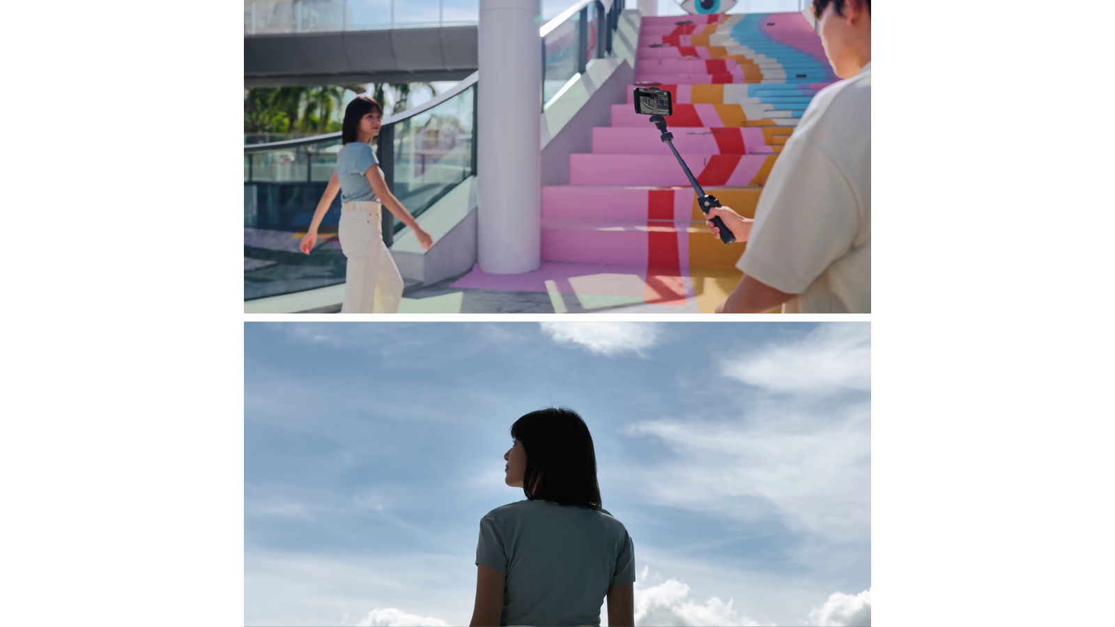 O cabo extensor integrado expande seu campo de visão, permitindo que você inclua mais amigos, animais de estimação ou paisagens deslumbrantes em cada selfie. Enquanto estiver fazendo vlog, seus vídeos também se tornam mais ricos e visualmente envolventes de ângulos elevados a baixos.