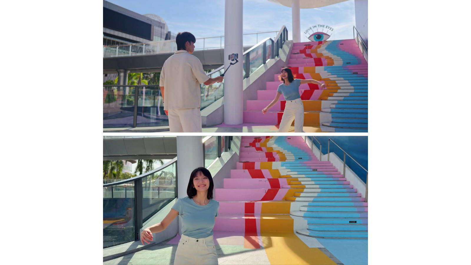 Um estabilizador mais flexível oferece mais possibilidades. O eixo panorâmico do Osmo Mobile 8 suporta rotação horizontal ilimitada de 360°, dando a você a liberdade de capturar fotos e vídeos panorâmicos suaves de qualquer ângulo. Combinado com o rastreamento inteligente, o estabilizador pode travar continuamente em objetos em movimento, entregando filmagens contínuas e com aparência profissional.