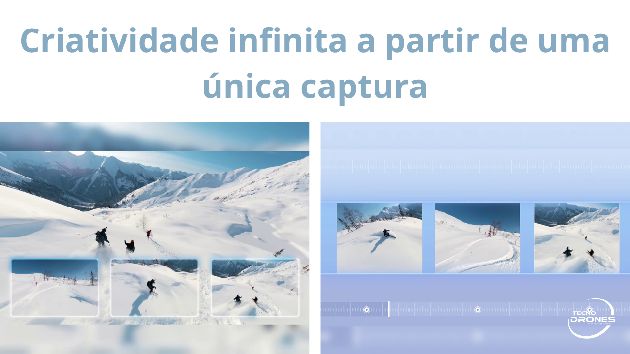 Capte uma visão completa 360° em um único voo. Na pós-produção, redefina o enquadramento de qualquer perspectiva para transformar um clipe em várias criações.