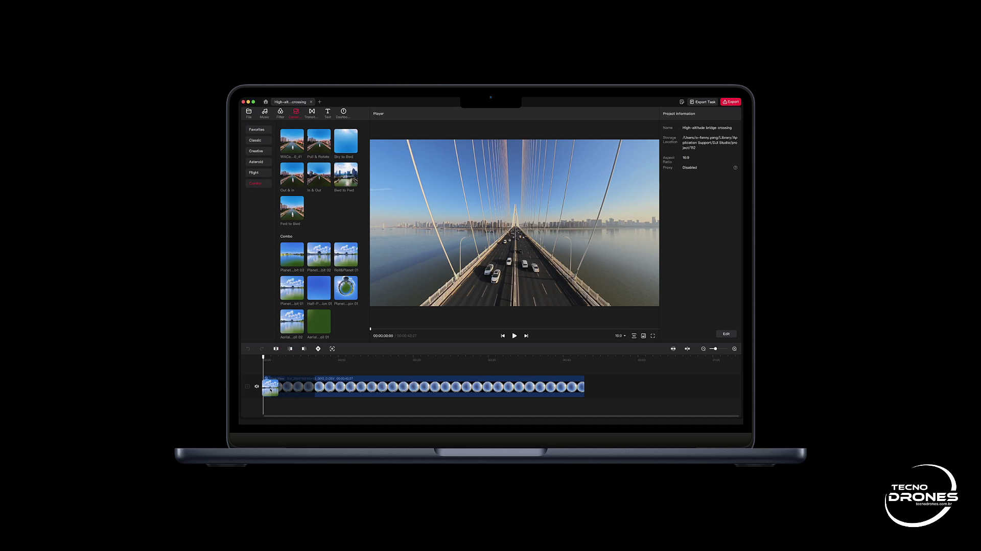 No DJI Fly e no DJI Studio, você pode adicionar efeitos de movimento de câmera em um único toque.