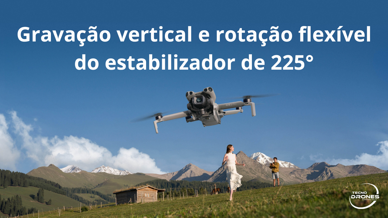 O Drone Mini 5 Pro suporta rotação da câmera grande angular e gravação vertical verdadeira, trazendo maior liberdade e possibilidades para o movimento da câmera. Tanto o controle manual quanto os modos inteligentes proporcionam maior flexibilidade nos ângulos de câmera e rotas de voo.