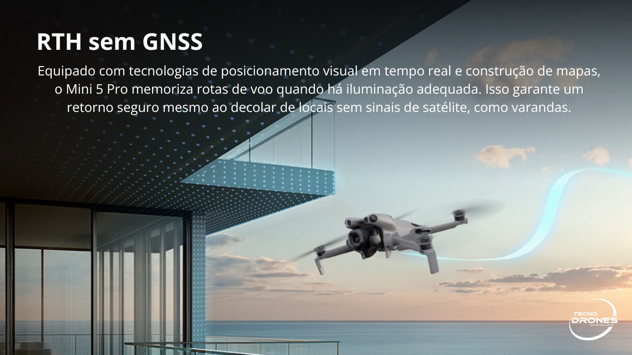 21 minutos (usando a bateria de voo inteligente DJI Mini 5 Pro)