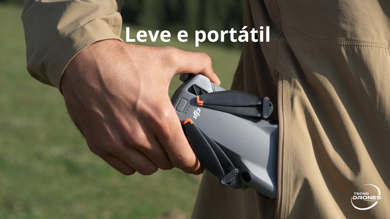 O Mini 5 Pro possui um design dobrável ultraleve e compacto, que cabe facilmente em uma mochila ou bolso. Com 42 GB de armazenamento interno, as filmagens podem ser salvas diretamente, garantindo um aproveitamento ininterrupto do voo.